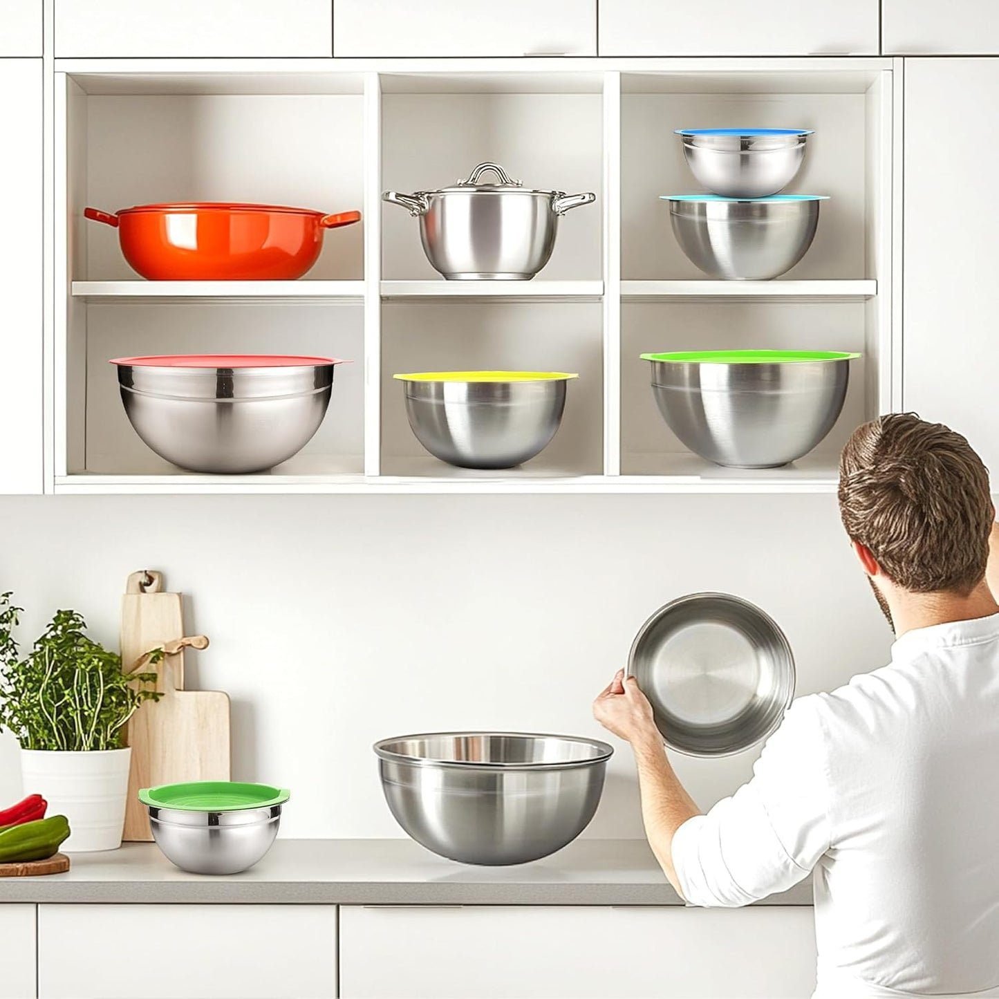Organize your kitchen and preserve your food for longer with this incredible set of stainless steel bowls!